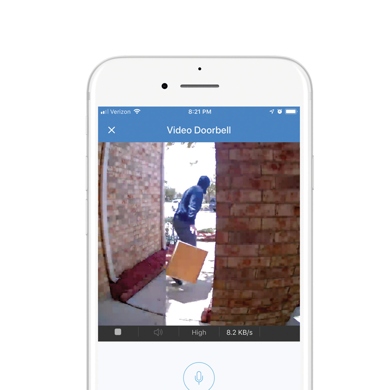 Even a tiny package on the ground is easily viewed with the Alula Video Doorbell’s 180-degree vertical field of view.
