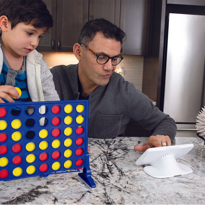 Slimline tablet with vivid 7" touchscreen is easy to operate. Mount to your wall or move throughout your home with the adjustable deskmount.