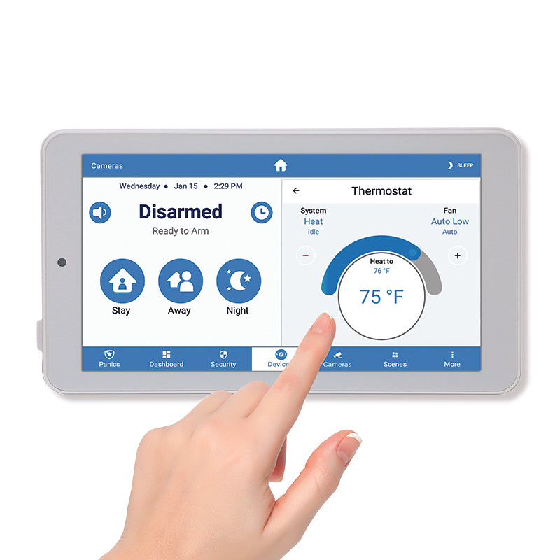 This easy to use SmartPad features advanced arming capabilities, full Smart Home device control, and provides live camera feed.
